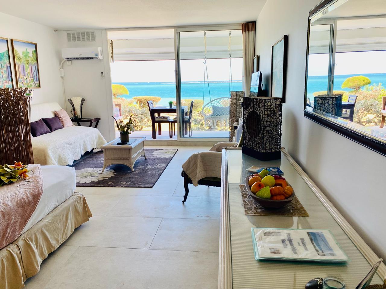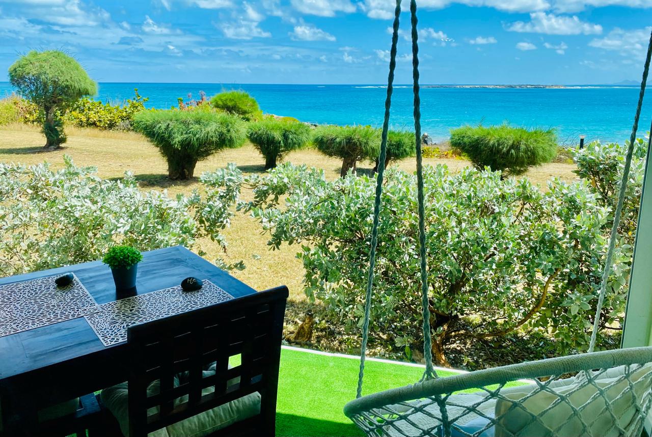 The turquoise sea greets you from the moment you enter, and your terrace opens onto the legendary sands of Orient Bay, just steps away. Elevated, private, quiet — the perfect setting for a romantic escape.